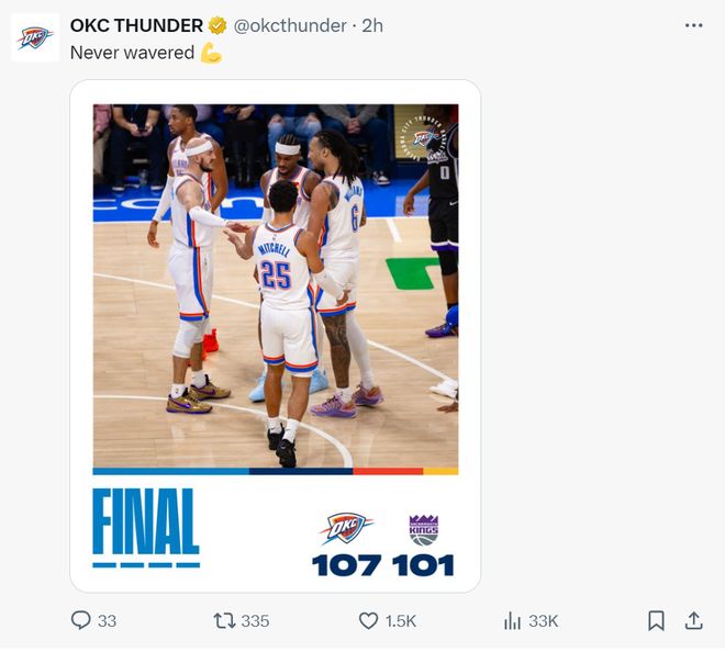 国王对威少重返俄城的第一场比赛也十分重视,他们甚至摆出了一套三后卫的先发阵容,威少是先发的一号位,搭档施罗德、拉文,让拉文移动到了小前锋的位置。