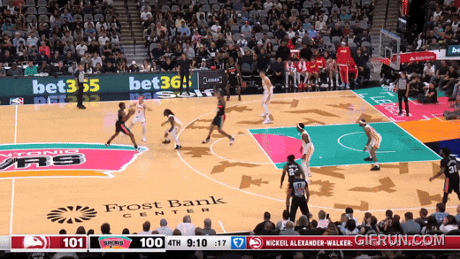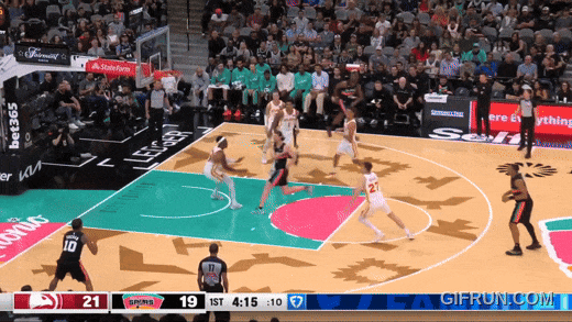 今天第一节,马刺在尽量带索汉;第二节,凯尔登和加西亚弱侧突击;第四节,中锋索汉小球阵。赢了。